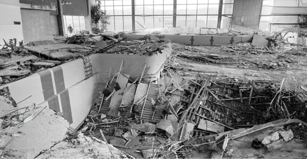 Swimming pool in Uster after collapse of roof elements and ceiling – 1985.