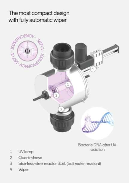 Medium-pressure UV lamps operate on the broad-spectrum radiation principle, spanning from 200 to 600 nm. This broad range of wavelengths enhances their effectiveness by increasing the number of pathogens they can target. Furthermore, this broad-spectrum UV radiation permanently disrupts the DNA of microorganisms, preventing any possibility of DNA repair and reactivation.