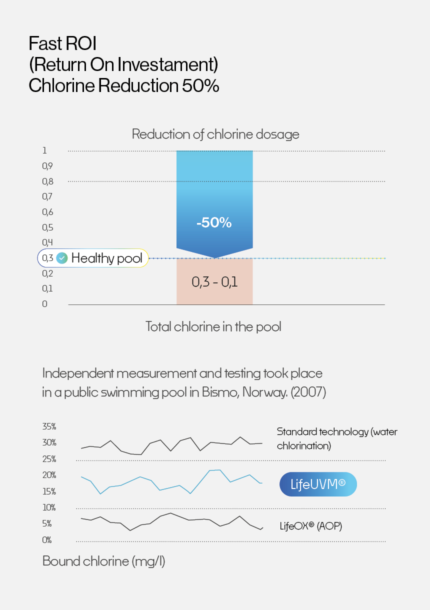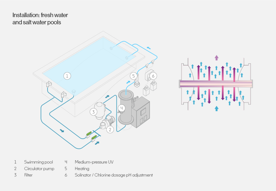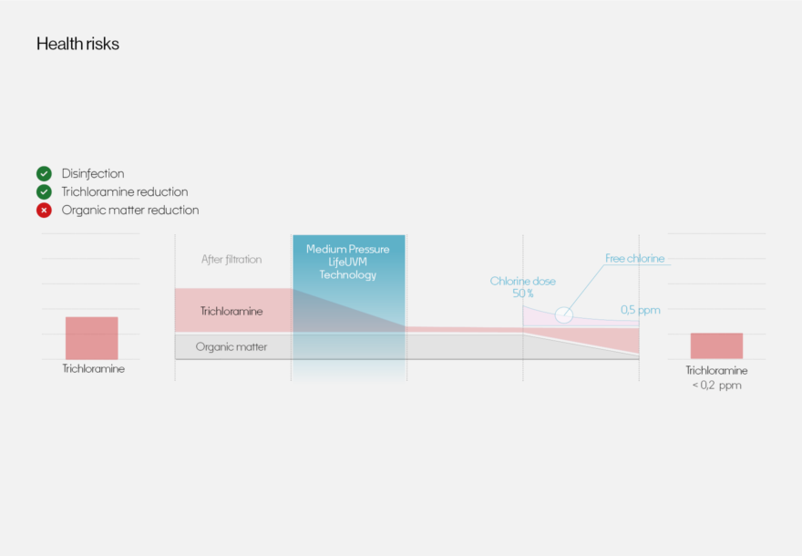 The most advanced mediu-pressure UV system on the market. Permanent Disinfection & Destruction of Unhealthy Trichloramine in One Compact System with Unique LifeAGE® Technology.
